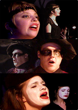 Pierrot LunairePierrot Lunaire is costumed, staged, and illuminated with sets, props and special effects in collaboration with the Phoenix Theatre Department. Students in the School of Music at the University of Victoria give its musical performance. My vision of Pierrot Lunaire, as a piece of music theatre, is a projected black Cabaret with Expressionist overtones (cf., Fritz Lang’s film “The Cabinet of Dr. Caligari” - more fantasy than expressionism, some say). Its beautiful music, a music from a past of which its present predicted a brave, new atonal future, is rendered a sentimental, passionate and lyrical interpretation. As in “Dr. Caligari”, I wanted to explore a perceptual and psychological balance within watching a musical performance and dreaming it. The music, alone and by itself, is a breakthrough in early twentieth century music language; its resonance is still prominent and significant today. This is the first occasion in the performance history of the work that the vocal ‘sprechstimme’ part has been parsed into three different roles and set in three different languages with female and male singers. Why three singers and three languages? The project presented an opportunity, in my opinion, for a new rendition at combining aspects of its performance history while creating a new ambience, a whole new Pierrot - a Pierrot of fun, drama, polyphony and a little kitsch. The original composition, sung in German, was commissioned by the Cabaret reciter (diseuse) and actress Albertine Zehme. The ensemble, under the direction of Schoenberg, gave 100 hours in rehearsing for the premiere. Its success was immediate. The ensemble toured and recorded the work that included Schoenberg’s interpretive champion, pianist Eduard Stauermann. The composition marked the beginning of Modern Music in the 20th Century; all composers had to acknowledge its brilliance and vision (“Pierrot Lunaire is the solar plexus, as well as the mind, of early twentieth century music”, Stravinsky, a decade after Schoenberg’s death). In 1920, Schoenberg attended a performance in Frankfurt where a male gave the singing role; he approved. The next year, Darius Milhaud premiered it in Paris using the original French poetry; the Parisian audience loved it. In Berlin, students gave it an impressive performance. In the recent decade, the music scholar Andrew Porter translated the text into English for an excellent recording by Lucy Shelton and the Da Capo Players. In “The Relationship to the Text” (published in the 1912 ‘Blaue Reiter’ Journal, edited by painter Wassily Kandinsky), Schoenberg discussed the direct contact with the sound of the first words being essential to a linguistic exploration of music as language, a relationship that would contain the spiritual, political and psychological functions in the music’s immediacy. The Symbolist poetry of Albert Giraud mirrors extreme states: the madness of creativity, the symbol of the moon, disillusioned sentimentality as well as the satirical and demonic allusions of the Pierrot figure. Its pattern of lines and repetition suggested to Schoenberg a formal structure which the composer would utilize in the traditional forms of waltz, passacaglia and fugue. Yet, the composer would breach conventional expression in art and tonality through a suspension of the tonal system and the creation of a new vocal instrument, sprechstimme – spoken song. The interpretation of how to execute sprechstimme is still of interest and debate today. Our performance places emphasis on pitch and expression. In the orchestration, a different instrumental combination is used for each piece which ranges from a single instrument to the entire ensemble; a reaction, as noted by Pierre Boulez, to the “inordinately swollen and enriched orchestra of post-Wagnerian composers”. Arnold Schoenberg achieved a modernist innovation and discovery shared at the time by only the greatest masters: Debussy (“Jeux”), Webern (“Five Pieces for Orchestra, op. 10”), Ives (“Fourth Symphony”) and Stravinsky (“Le Sacre du Printemps”). Acknowledgements I wish to praise the ensemble of talented School of Music musicians who asked to be a part of this production; and, who learned to share my vision and interpretation and make it their own. I am grateful to Bert Timmermans of the Phoenix Theatre Department who helped coordinate and advise the major contribution made by Theatre to this performance. And, I am deeply indebted to Dean Giles Hogya for his support through the Dean’s Special Events Fund. Michael Huston of the Fine Arts Studios for Integrated Media (http://finearts.uvic.ca/sim) assisted in the post-production DVD as did Mark Franklin in post-audio production. I am so very thankful and honoured. I hope you enjoy our effort, our accidents and euphoria! Everbest, The Pierrot ProjectSonic Lab Friday, March 9, 2001, 8:30pm, Thrice seven poems from Albert Giraud’s Pierrot